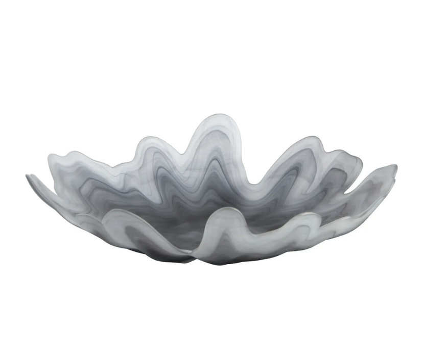 A beautifully designed glass bowl featuring an organic marbled wavy finish. Perfect to add a modern sophisticated touch to any of your rooms.